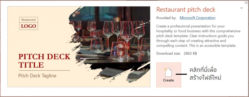 การสร้างไฟล์นำเสนอใหม่จากเทมเพลต